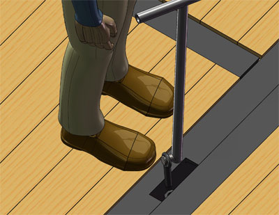 | Step 3: Adjust the gap and insert the positioningpin from the gap in the first female buckle | Step 4: Place the third mat on the other side of thefirst. Align the third piece of female buckle with thefirst mat male buckle and insert the positioning pin |